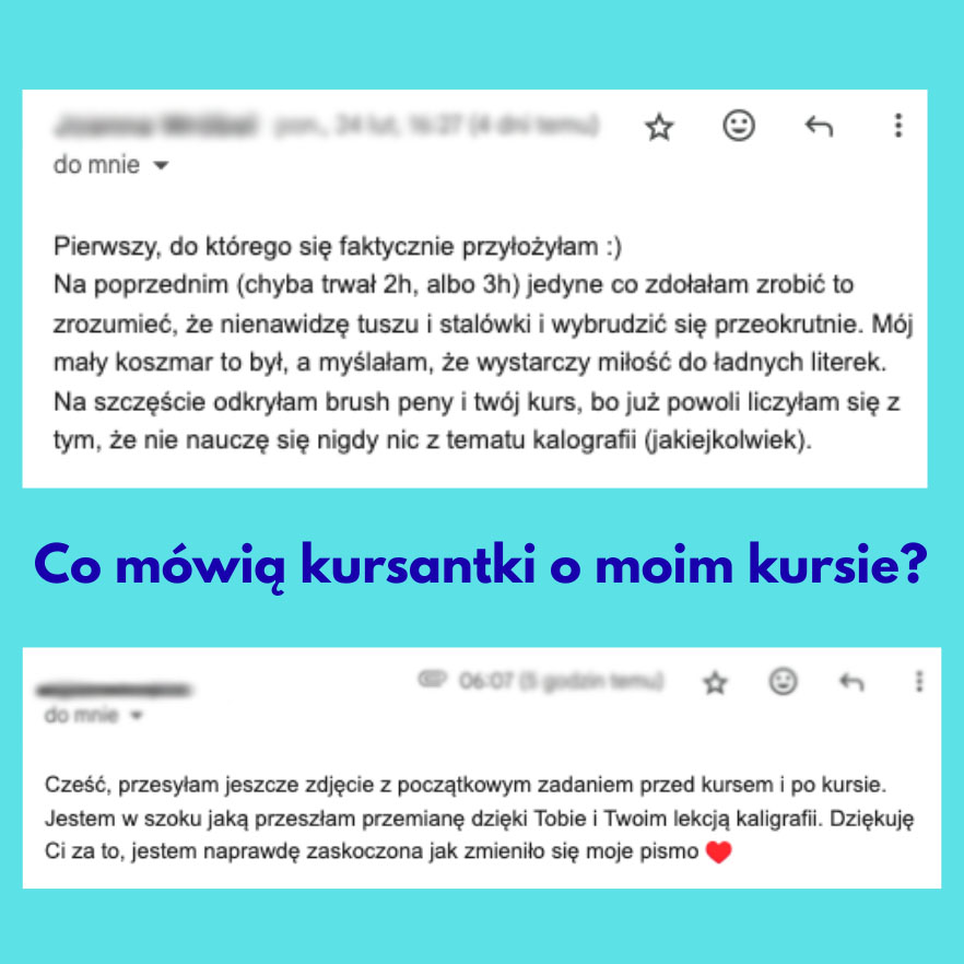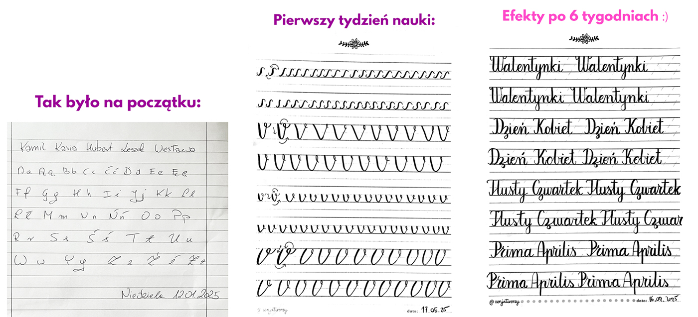 – filmiki z kaligrafią każdej litery – 3 miesiące po kursie,