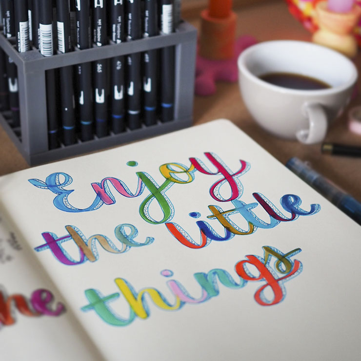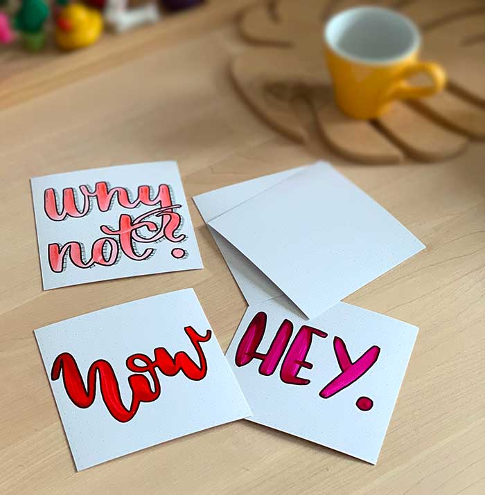 wersja dla kaligrafujących – cień do wykaligrafowanych liter (brush lettering).